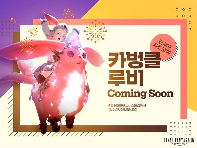 2019 팬페스티벌 서울 현장 Q&A 에서 있었던 모험가님 요청에 화답하기 위해 4/14(화) 크리스탈샵에서 가장 먼저 공개 됩니다.https://t.co/xaPBemtMgn #파이널판타지14 #파판14 #세계최초 #카벙클루비#모험가님과의_약속 #잊지않고_지켰어요 pic.twitter.com/TGuRIvb52U