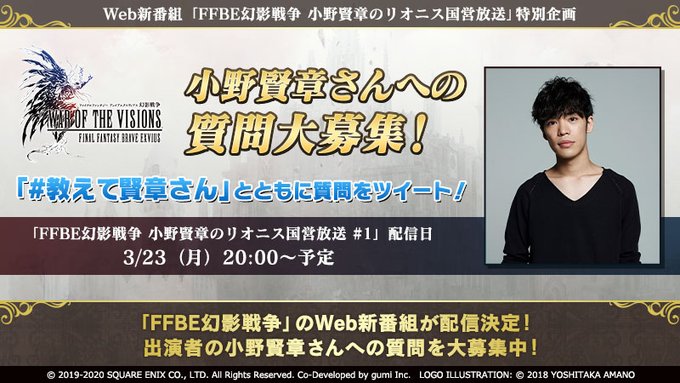 MCに #小野賢章 さんを迎えた新番組「FFBE幻影戦争 小野賢章のリオニス国営放送」が、3月23日(月)20時より配信決定!